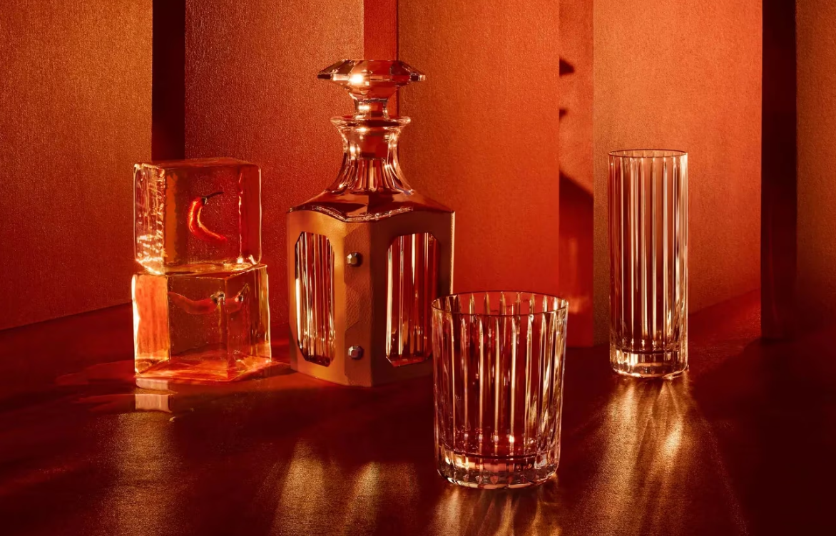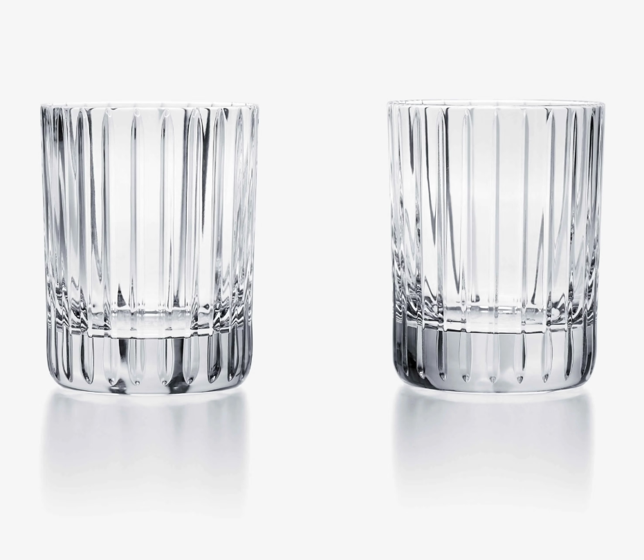 The Baccarat Clear crystal Harmonie tumbler has a marvelously linear silhouette that would be ideal for any stocked bar. Consecutive parallel cuts travel cleanly along the Clear crystal grazing the tumbler from its lip all the way down to its thick base. These lines emphasize the verticality of the tumbler as you sip your quality spirits and mixed drinks. The vertical sweep of the striping is also present on other pieces of the Harmonie collection, which includes highball glasses and a round whiskey decanter. Harmonie is the collection for creative cocktail enthusiasts and lovers of rare whiskies.