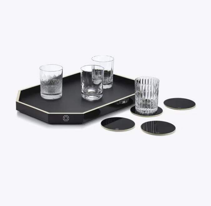The Octogone tray is a beautiful, lacquered piece, available in 3 sizes. Inspired by the red octagonal tassel, the iconic signature of Baccarat, a series of refined lacquered accessories comprise these new pieces, which come to enlarge the Octogone collection. The tray, in the shape of an octagon, is meticulously handcrafted using ancestral artistry. Its brilliant surface captures the light and highlights Baccarat’s crystal creations. Each tray comes with a removable leather insert, adding an elegant contrast of materials and textures. The Octogone tray exists in a variety of shades, enriched over the seasons and matched with the coaster from the same collection.