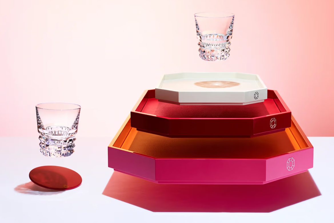 The Octogone tray is a beautiful, lacquered piece, available in 3 sizes. Inspired by the red octagonal tassel, the iconic signature of Baccarat, a series of refined lacquered accessories comprise these new pieces, which come to enlarge the Octogone collection. The tray, in the shape of an octagon, is meticulously handcrafted using ancestral artistry. Its brilliant surface captures the light and highlights Baccarat’s crystal creations. Each tray comes with a removable leather insert, adding an elegant contrast of materials and textures. The Octogone tray exists in a variety of shades, enriched over the seasons and matched with the coaster from the same collection.