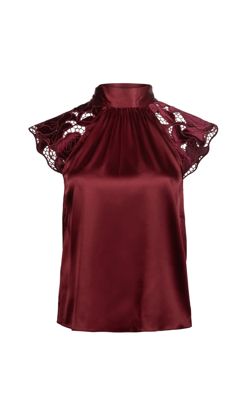 RACHEL VELVET LACE BLOUSE - Crimson