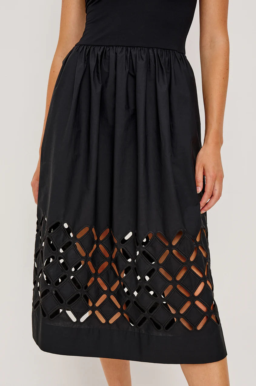 Effortless and elegant, the Nadya midi dress features an ultra-soft scoop neck bodice paired with a lightweight skirt. Engineered cutouts from mid-skirt to hem and discreet on-seam pockets complete the look.