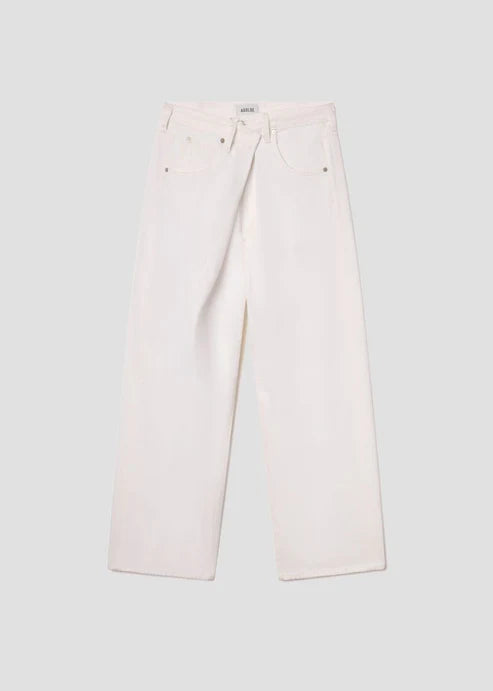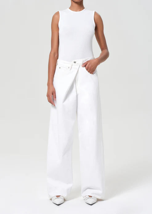 The Vana Jean Fold Jean in white denim offers a fresh, clean look with a bold silhouette and distinctive "fold" closure. Made from regenerative cotton, they’re stylish and sustainable, promoting soil health and carbon sequestration. The low-slung fit and roomy, full-length leg create an effortlessly oversized vibe. Pair with a simple graphic tee and sneakers, or style with a breezy button-up and slides for a relaxed, sunny-day outfit