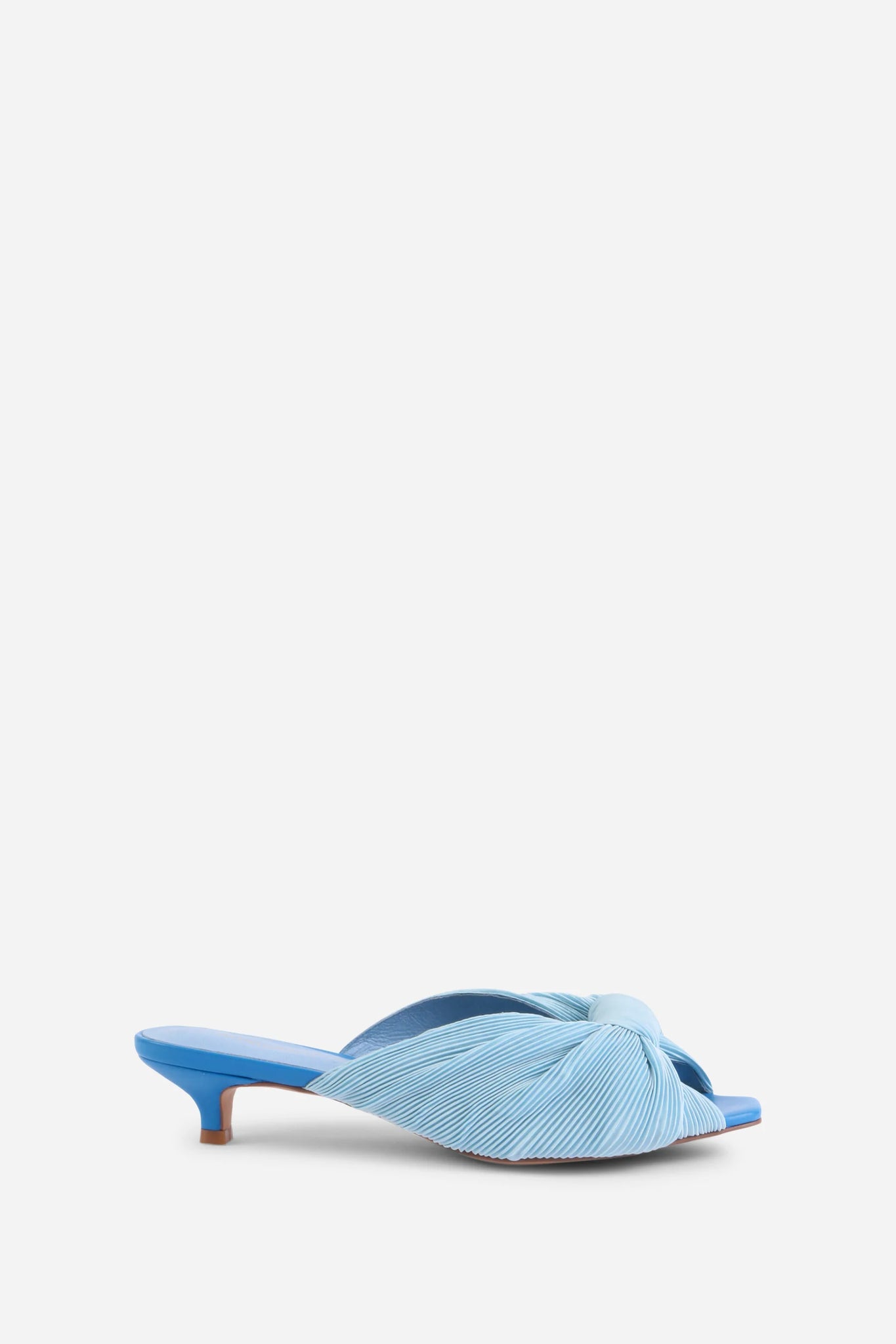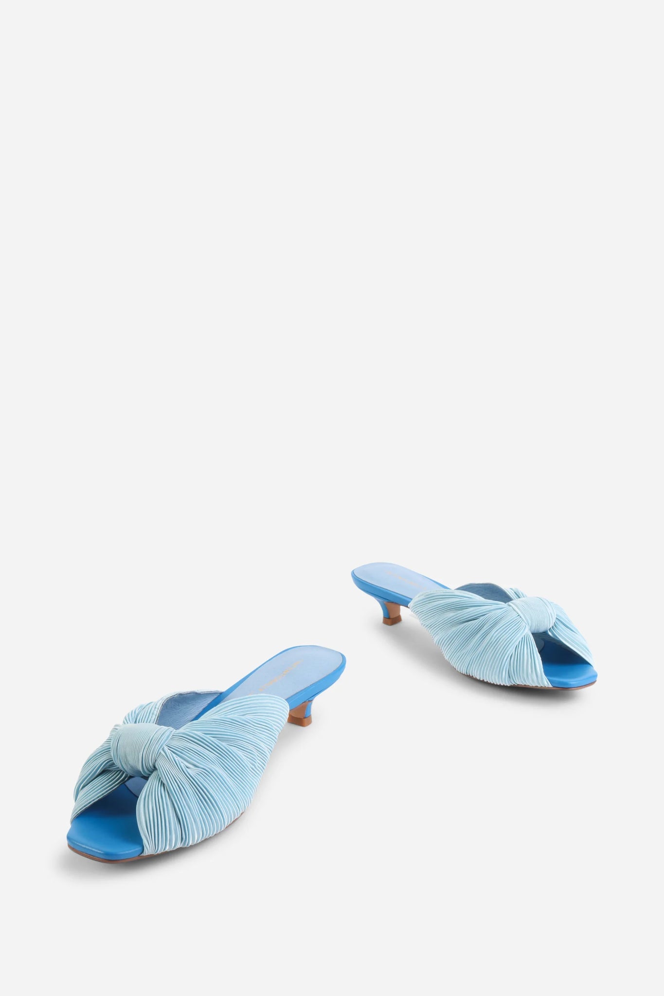A gorgeous vintage inspired kitten heel for any occasion. The micro-pleated satin and gathered knot detail give the Curfew Kitten Heel an elegant evening vibe that is flirty and unexpected. The perfect inset low kitten heel and contrasting color detail on the footbed feels on trend and timeless