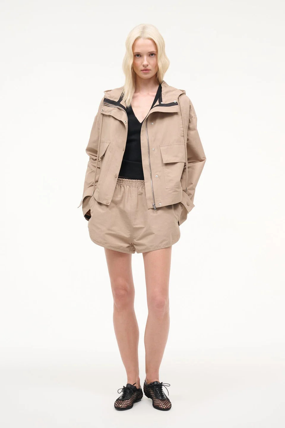 Alta jacket features a dual zip and button front closure for versatile styling. The storm flap and hood provide practical protection, making it an essential layering piece for any season.