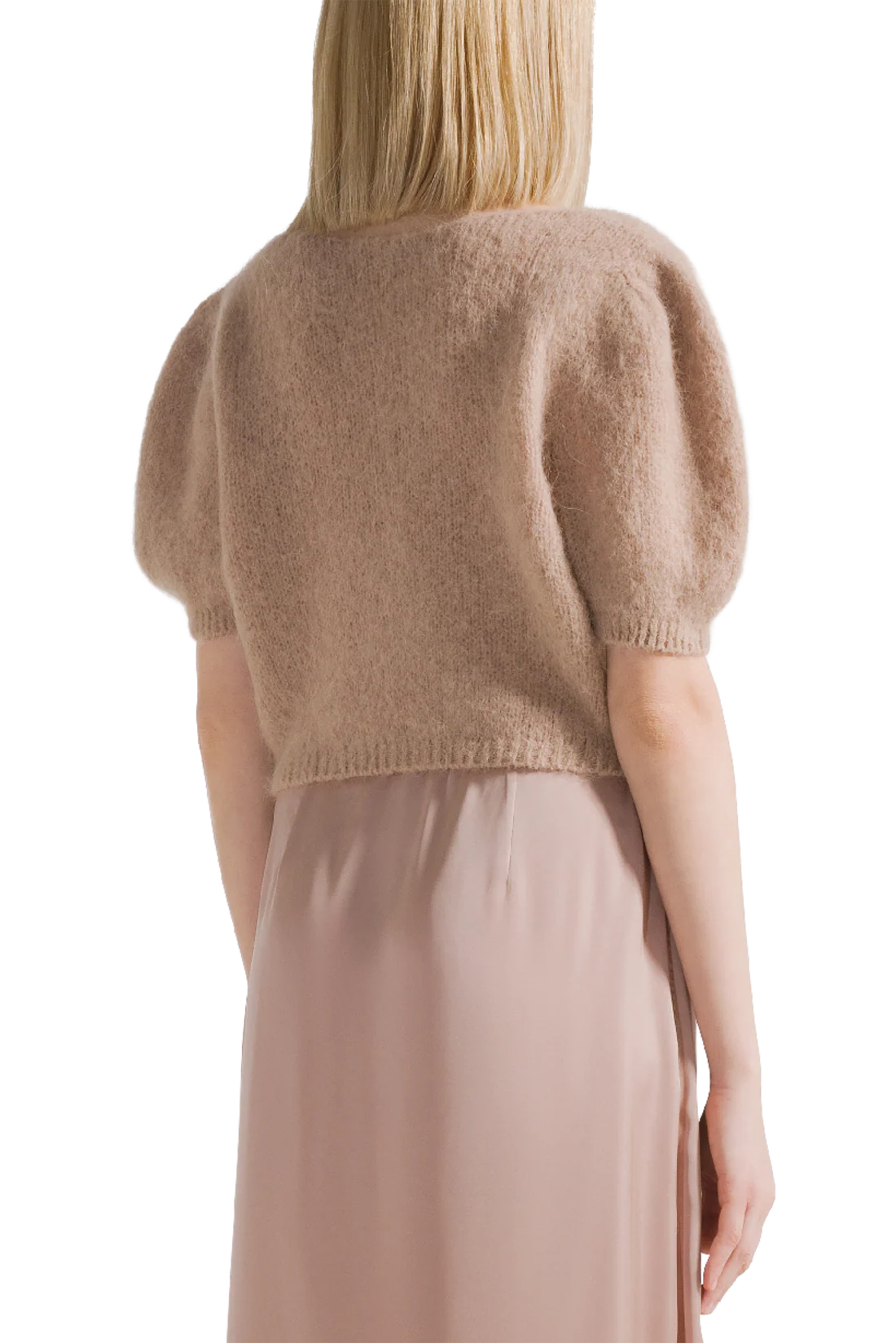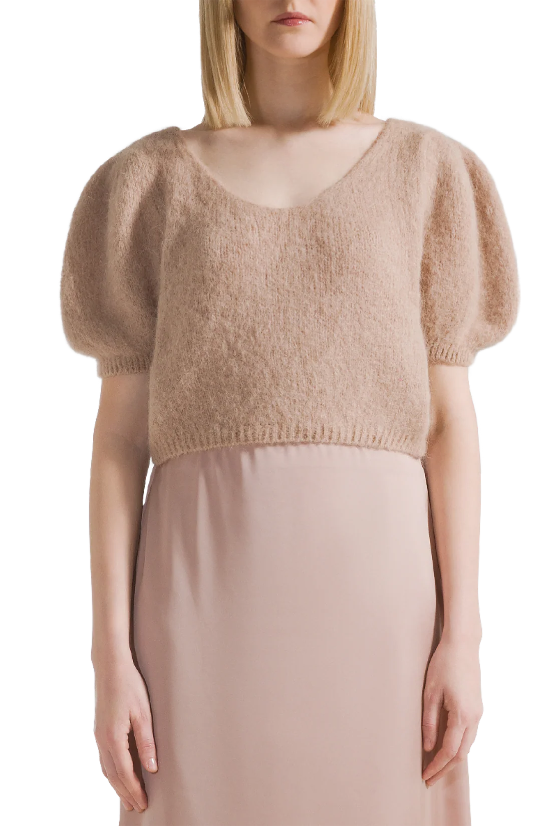 The Lolanda pullover, with its shortened design, offers an exceptionally soft touch, imparting a sense of airiness and lightness to your ensemble. Its short sleeves, adorned with an elastic band, render it an ideal choice for the spring and summer seasons. Lolanda pairs perfectly with high-waisted trousers or a skirt for a sophisticated business attire, as well as with jeans for a relaxed, casual style