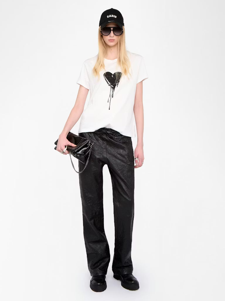- T-shirt in 100% cotton- "Flowing heart" print with rhinestones- Round neckline- Short sleeves