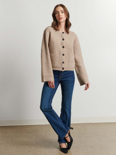 An instant classic! The Portia cardigan features a collarless knit, with button closer and patch pockets making it your new go to layering piece this season.