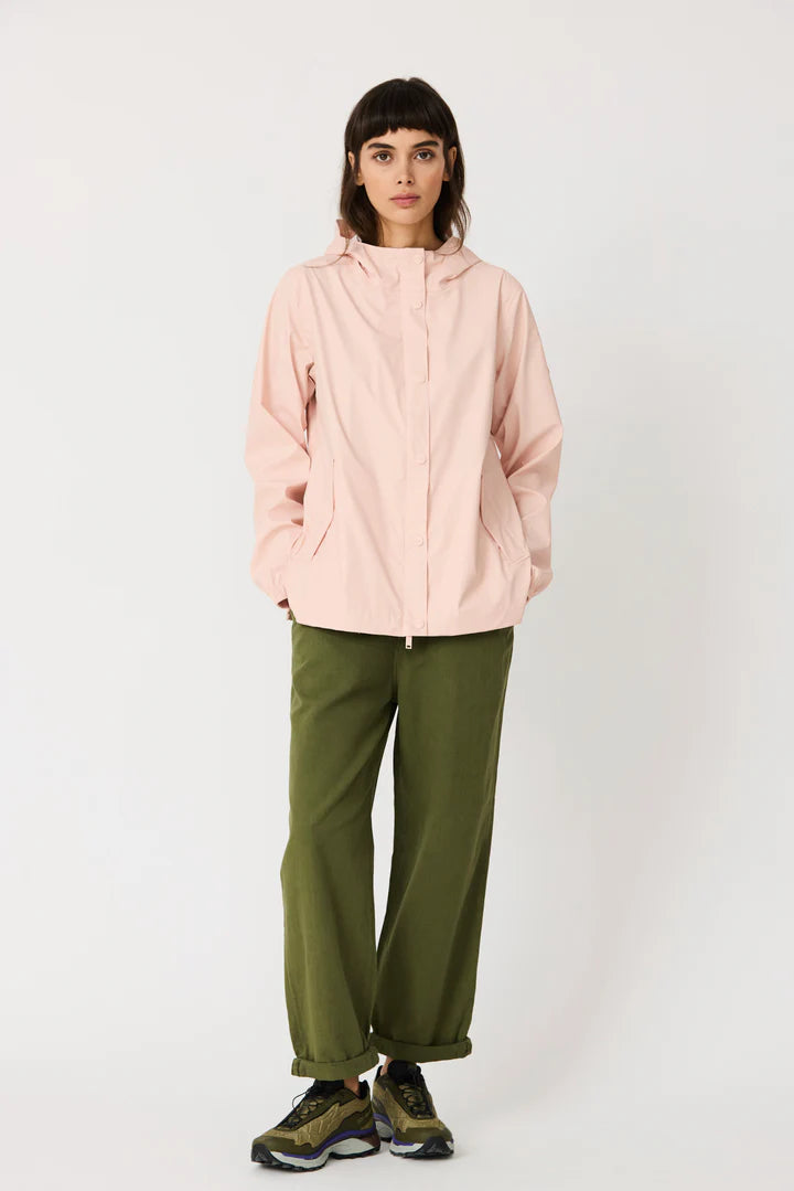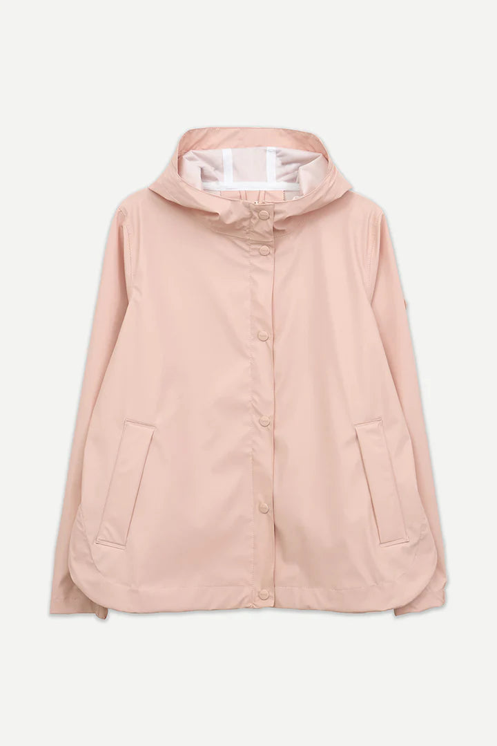 Nimbuselle is a lightweight and modern raincoat made from fine PU. 100% waterproof, with all seams taped, featuring a young silhouette and a rounded hem—perfect for everyday wear in mild, rainy weather.